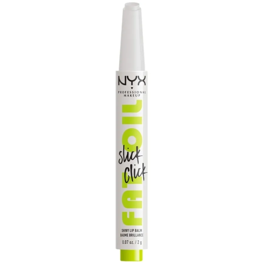 NYX PROFESSIONAL MAKEUP Fat Oil Slick Click gir myke, fuktede lepper med bare ett klikk. Denne pigmenterte leppepomaden gir akkurat passe mengde produkt for en diskret, naturlig farge og en superglansfull finish uten å føles klebrig. Den veganske formelen er beriket med avokado-, multe- og bringebærolje, som tilfører intens fuktighet i opptil 12 timer, samtidig som den gir en behagelig, nærende følelse. Finn din favoritt blant de flatterende nyansene, som passer alle hudtoner.