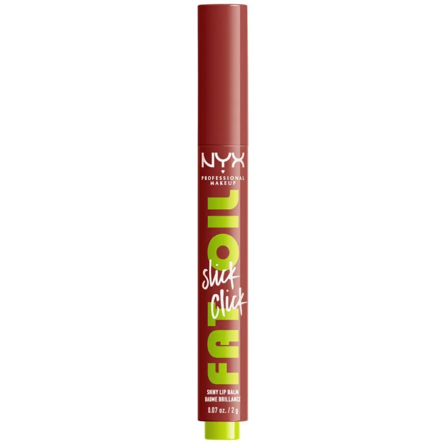 NYX Professional Makeup Fat Oil Slick Click er en pigmentert leppepomade som med bare et klikk gir akkurat passe mengde til leppene. Få et pleiende boost med den veganske formelen* som er beriket med avokado-, multe- og bringebærolje. Myke lepper med bare ett klikk.