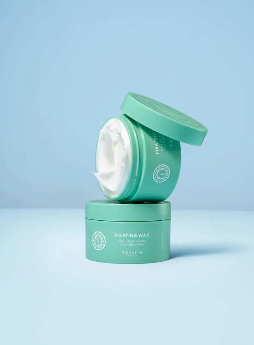 Fixating Wax fra Maria Nila er et matt stylingvoks utviklet for å gi langvarig hold, definisjon og kontroll. Den faste formelen gjør det enkelt å style og forme håret, spesielt kortere frisyrer eller uregjerlig hår. Beriket med CGC-kompleks (solsikkefrøekstrakt og Quaternium-95) samt en nærende proteinkombinasjon fra grønnkål, gulrot og sitron, som styrker og beskytter håret. 100 % vegansk og bærekraftig utviklet.