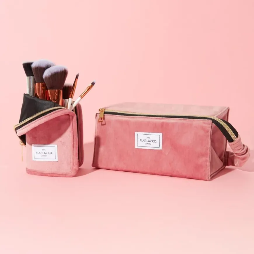 Flat Lay Makeup Box Bag fra The Flat Lay Co. er en smart, strukturert sminkemappe som kombinerer stil med funksjon. Den åpnes til et praktisk, firkantet brett på sekunder og gir deg full oversikt over sminken – ingen mer graving i kaotiske mapper! Laget med tre elastiske børsteholdere, innvendig glidelåslomme og en praktisk bærehank. Når vesken lukkes, blir den til en ryddig og stabelbar boks som passer perfekt på sminkebordet eller i kofferten. Perfekt både hjemme og på reise – og den beskytter alltid produktene dine fra skitne overflater og søl.