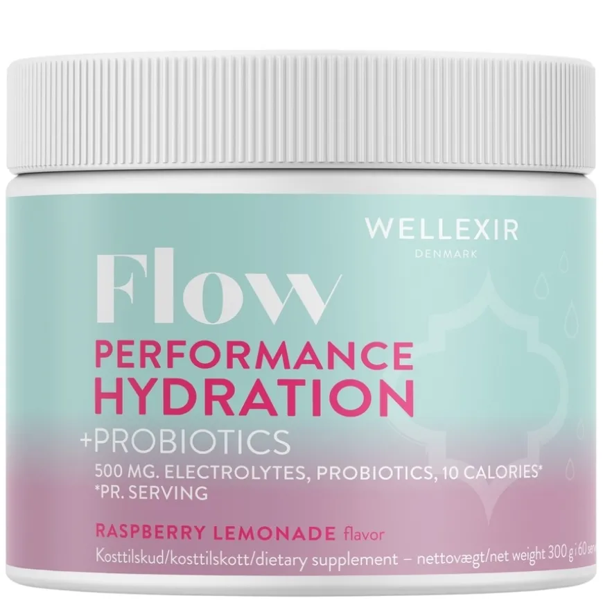 Wellexir Flow Performance Hydration Raspberry Lemonade er en elektrolyttdrikk utviklet for å optimalisere væskebalansen og mineralopptaket under fysisk aktivitet eller varme forhold. Formelen er utviklet i samarbeid med ernæringseksperter og gir kroppen essensielle elektrolytter for hydrering og restitusjon.