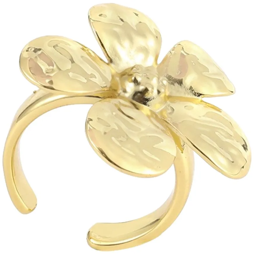 Flower Adjustable Ring Gold fra Timi of Sweden gir et gyllent preg av blomstermagi til hverdagen. Denne ringen er designet med en delikat blomst i fokus og er like allsidig som den er vakker. Med justerbar størrelse passer den alle fingre uten stress – perfekt for deg som vil slippe å gjette riktig ringstørrelse. Filippa er laget for å stables, styles og brukes på din måte – uansett om du går for et avslappet uttrykk eller pynter deg til fest. Det 18 karat gullbelagte messingmaterialet gir et elegant og varmt skinn, og blomsten tilfører akkurat passe mengde leken sjarm. En favoritt i smykkeskrinet – klar til å blomstre med deg.