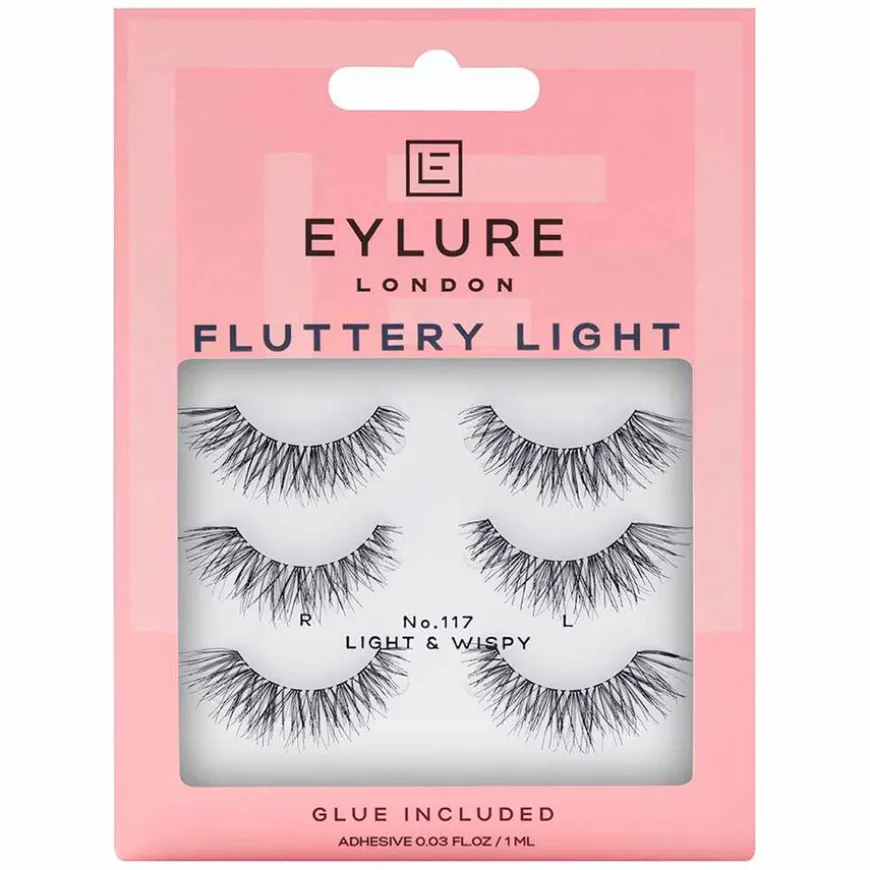 Eylure Fluttery Light No.117 er løsvipper som har en rufsete finish som gir deg den ekstra lengden og tykkelsen du ønsker for å fremheve den naturlige skjønnheten til øynene dine. Hvert par vipper er håndlaget og kan gjenbrukes opptil 5 ganger, emballasjen inkluderer Eylures lateksfrie vippelim som garantert varer i opptil 18 timer.