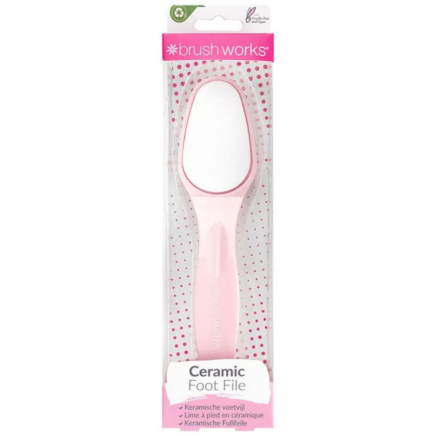 Foot File fra Brushworks er en praktisk fotfil av høy kvalitet med godt grep for raskt og effektivt resultat. Filen er tosidig med en grov og en finere slipeflate. Denne milde med svært effektive fotfilen fjerner hard hud ved å pusse bort døde hudceller for å avsløre vakre og velpleide føtter.Få silkemyke føtter med denne filen, du også!