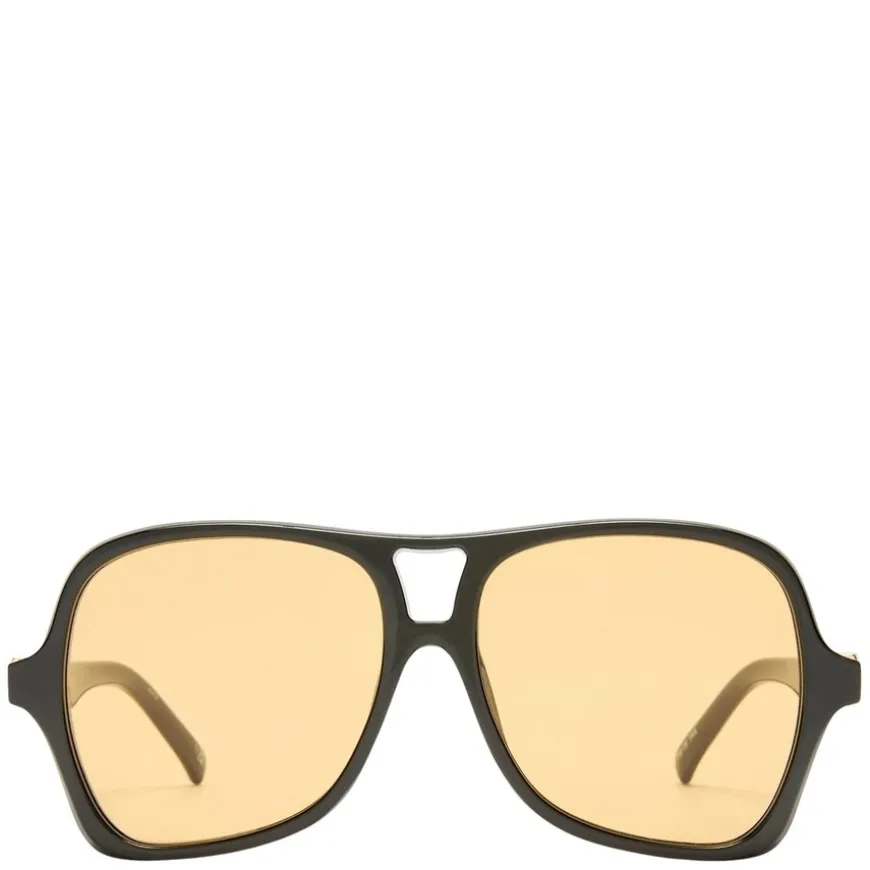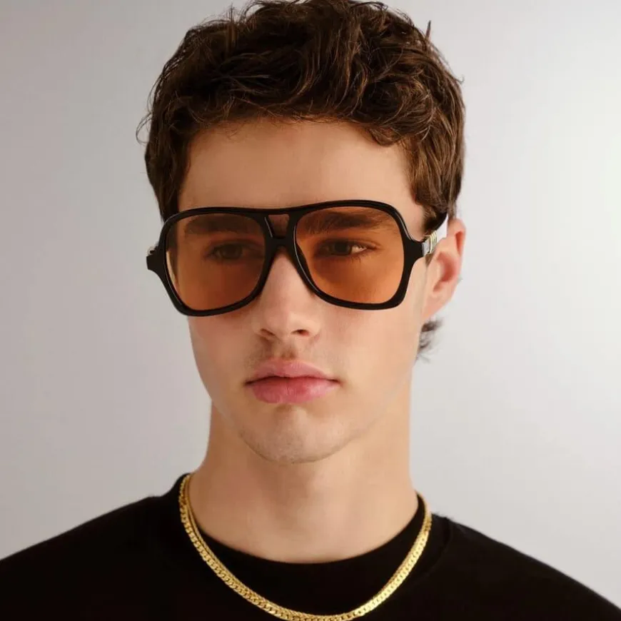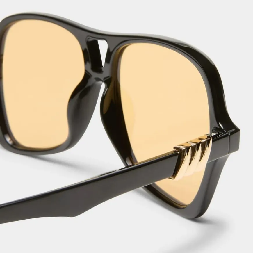 Fortune Teller Black fra Le Specs er en unisex solbrille med en karakteristisk oversized pilotform inspirert av 70-tallets retrostil. Den markante rammen, kombinert med raffinerte metalldetaljer, gir brillen et iøynefallende og sofistikert uttrykk. Den flatterende passformen passer både kvinner og menn, og er perfekt for deg som ønsker et dristig, men tidløst tilbehør. Rammen er laget av Ecozen T110 – en BPA-fri polymerplast med 10 % plantebasert biomasse, som gjør brillen både lett, slitesterk og komfortabel. Glassene i sennepsgul mono er produsert i ripe- og støtbestandig polykarbonat og gir UV-beskyttelse i kategori 1 – egnet for bruk i svakere sollys.