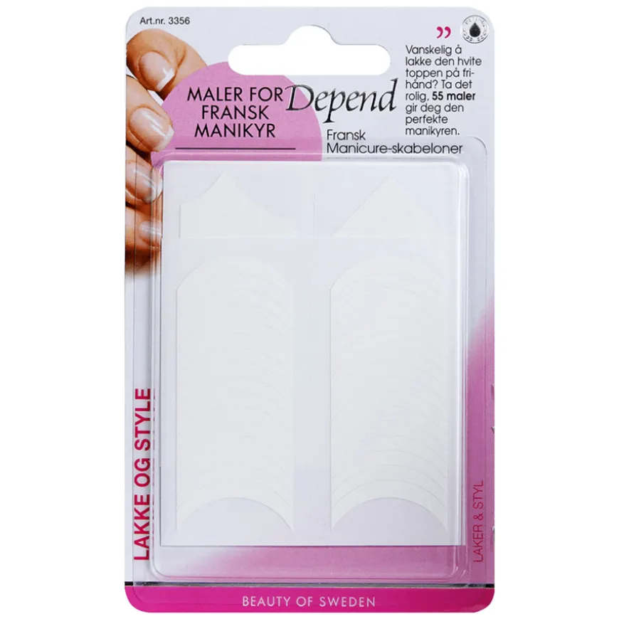 French Manicure Stencils inneholder 28 maler som gir deg den perfekte manikyren. 28 maler som er enkle å sette på og som gir et perfekt resultat. Malene sørger for at du kan lage den perfekte hvite tuppen.