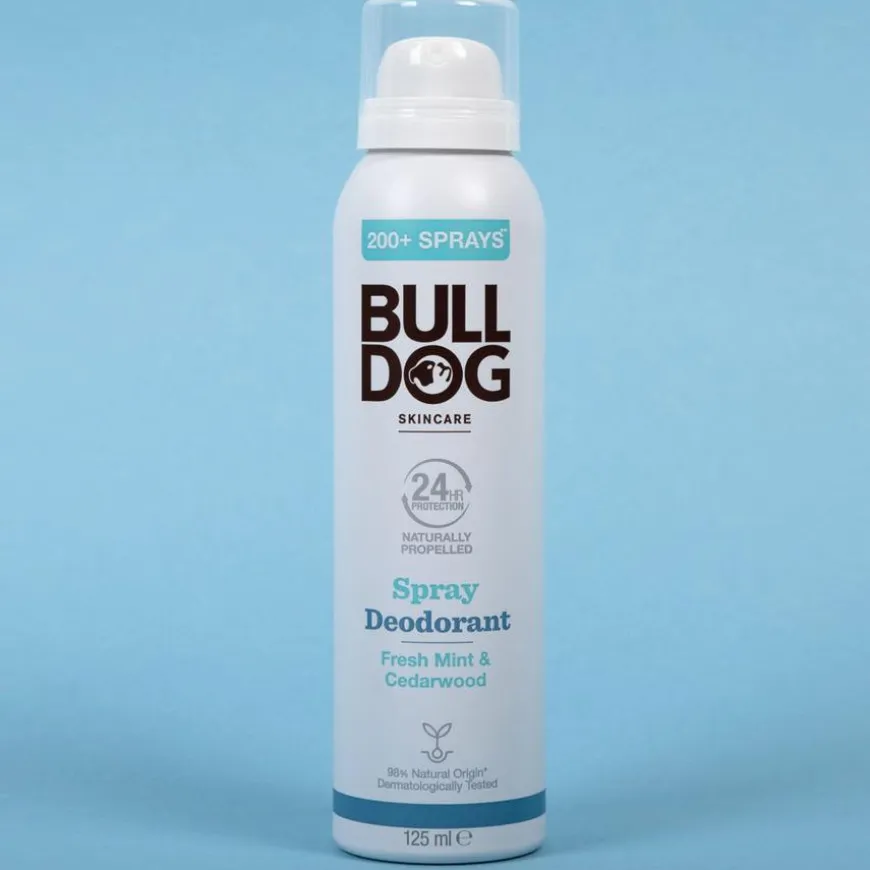 Bulldog Fresh Mint & Cedarwood Spray Deodorant bruker en innovativ teknologi som erstatter vanlige hydrokarbonpropellanter med den inerte gassen nitrogen, for å redusere produktet bidrag til klimagasser. Teknologien gjør også at 125ml gir like mange bruk som en deodorant i en forpakning på 250ml.