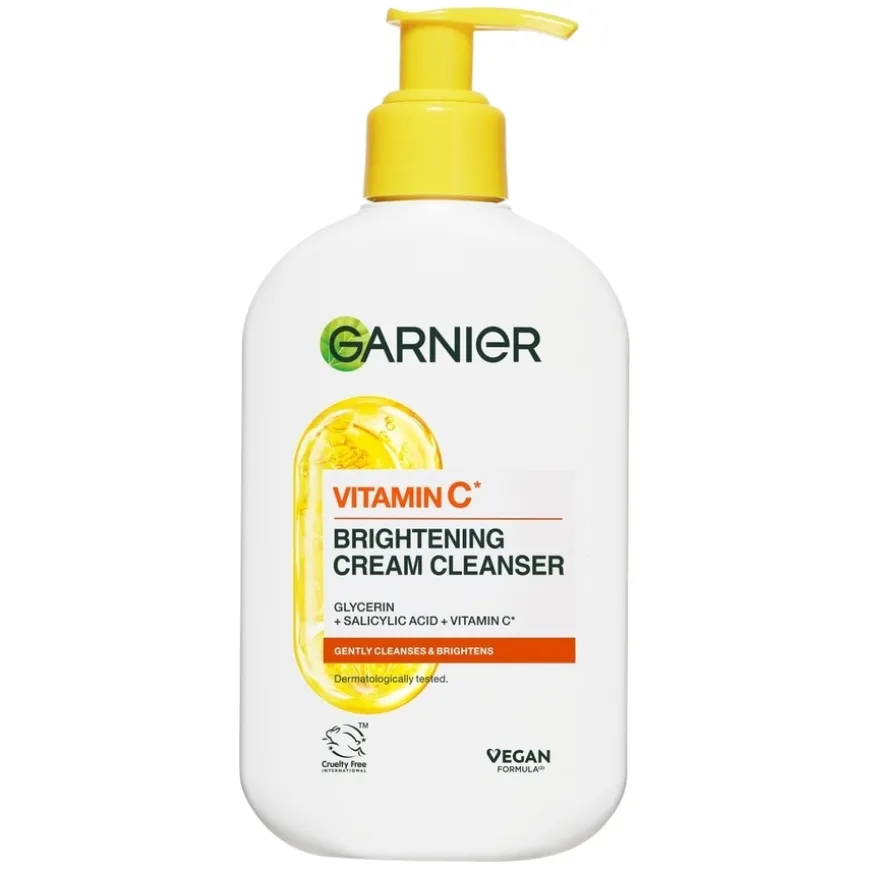 Garnier Vitamin C Brightening Cream Cleanser* er en skånsomt rensende krem-til-gel beriket med C-vitamin*. Formelen fjerner skånsomt sminke og urenheter, samtidig som den gir glød og bidrar til å bevare hudens naturlige fuktighetsbarriere.