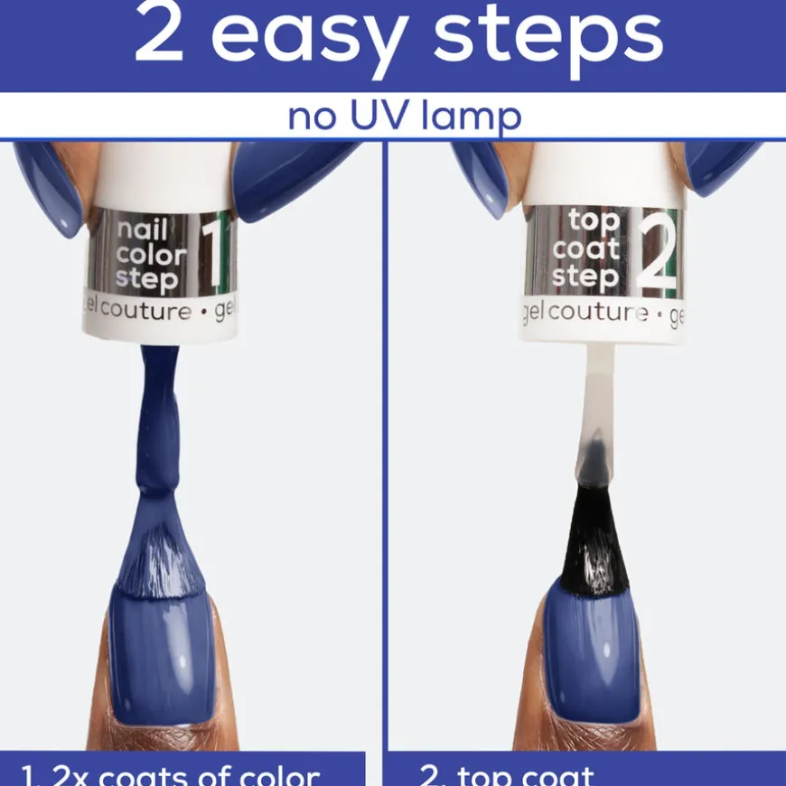 - 1) Legg 2 lag gel couture extreme long-lasting neglelakk.