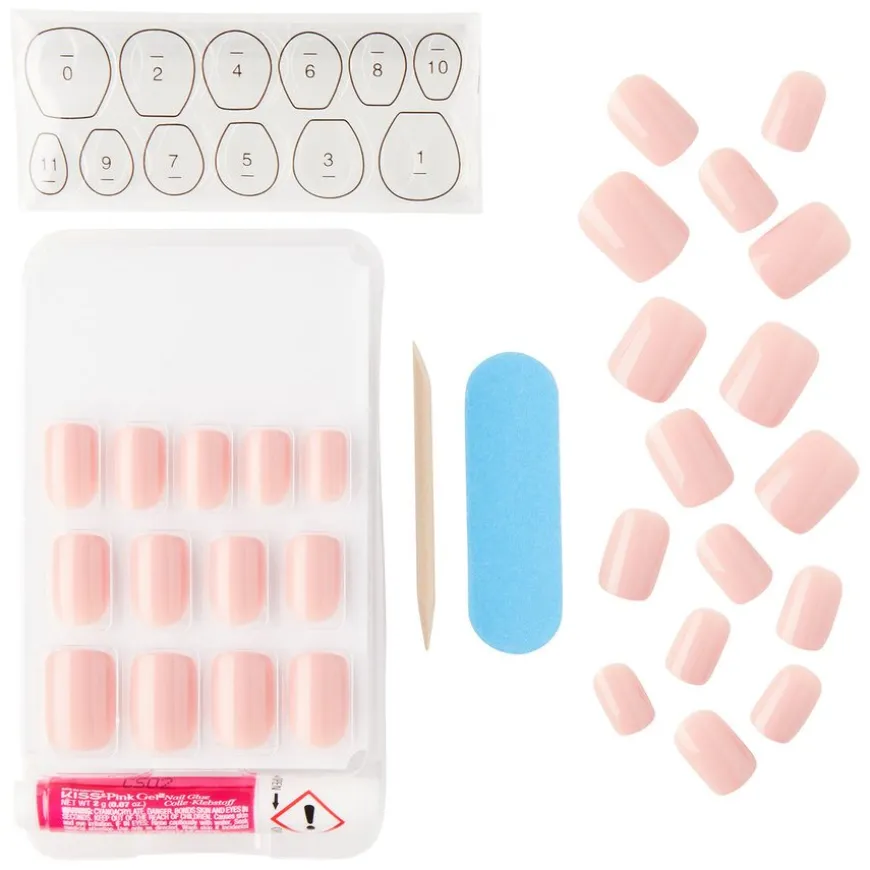 Nails: ABS Plastic, Glue: Ethyl Cyanoacrylate, Polymethyl Methacrylate, BHT, Red 22 (CI 45380), Adhesive Tabs: Acrylic Acid, Ethylhexyl Acrylate, Hydroxycyclohexyl Phenyl KetoneVær oppmerksom på at ingrediensene kan endres fra tid til annen. Du vil finne en oppdatert liste over ingredienser på pakken.