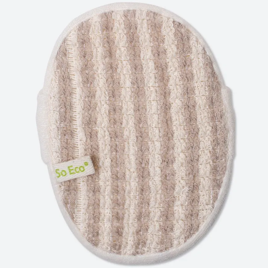So Eco Gentle Exfoliating Sponge hjelper deg med å eksfoliere huden forsiktig, og den er perfekt for å rense hele kroppen. Laget av naturlig bomull og ramie, hjelper svampen med å skape et rikt skum som gjør at huden ser gjenopplivet ut og føles forynget.