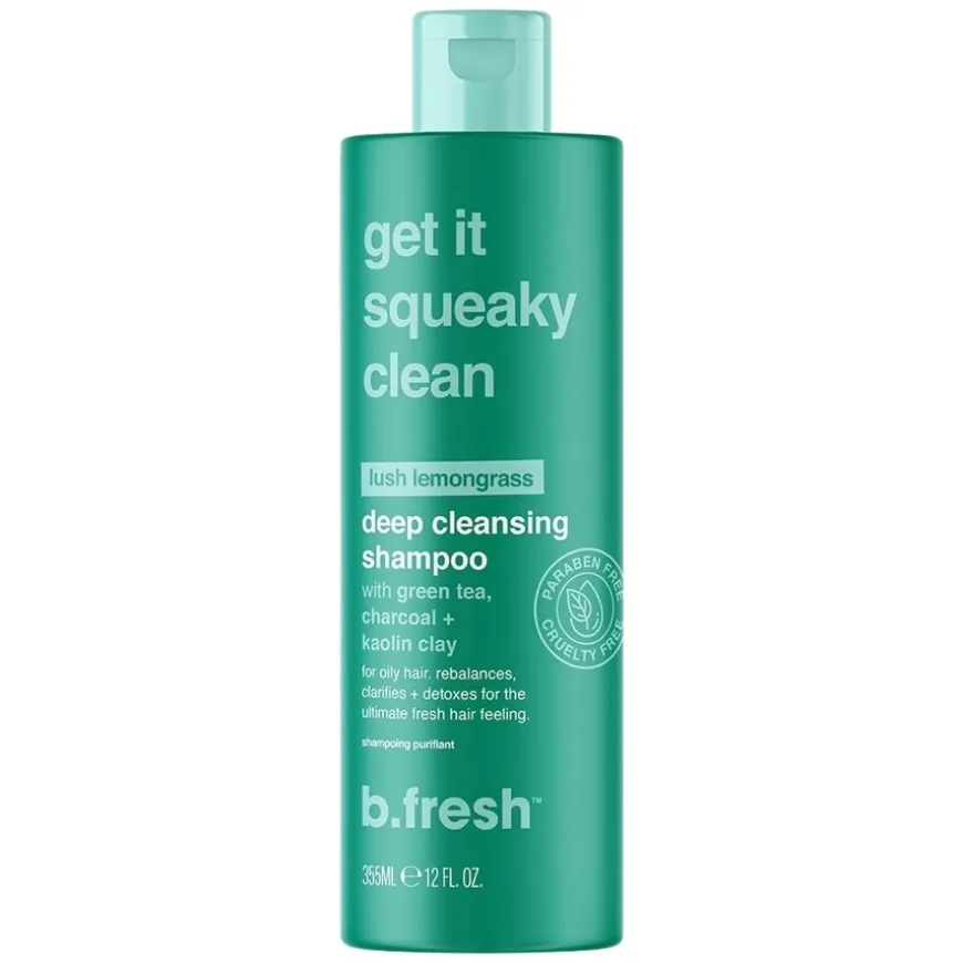Get It Squeaky Clean Deep Cleansing Shampoo er et dyprensende shampoo utviklet for fett hår og oljete hodebunn. Shampooen fjerner effektivt talg, produktrester og urenheter, og etterlater håret rent og balansert. Beriket med grønn te, kull og kaolinleire som detoxer og bidrar til å gjenopprette en sunn hodebunn. Den friske sitrongressduften gir en ren og energigivende følelse. Ideell for deg som sliter med oljete hodebunn, eller ønsker en rensende behandling én til to ganger i uken. 100% vegansk og fri for parabener.
