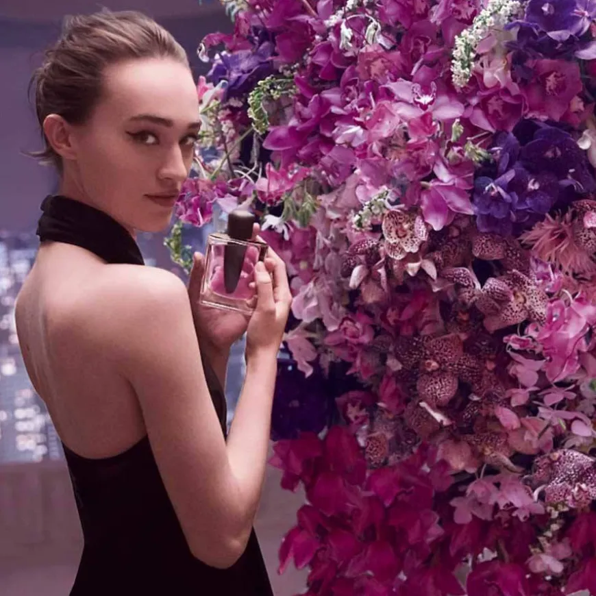 I toppnotene finner vi delikate fiolette blomster som møter krispe noter av Fuji-eple og granateple. Duftens hjerte er en miks mellom jasmin og wisteria, en Murasaki-farget blomst, hvor bladene er godt festet til stilken. Et pust av fressia gir buketten et snev av friskhet, balansert av kraften til sadeltre som gir et levende og pudret uttrykk.