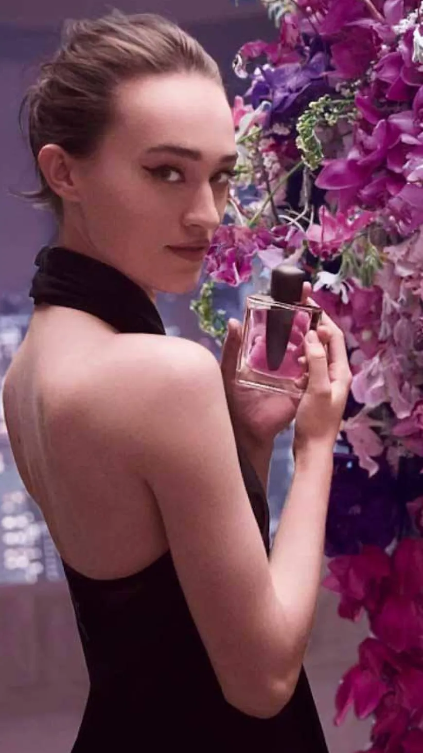 I toppnotene finner vi delikate fiolette blomster som møter krispe noter av Fuji-eple og granateple. Duftens hjerte er en miks mellom jasmin og wisteria, en Murasaki-farget blomst, hvor bladene er godt festet til stilken. Et pust av fressia gir buketten et snev av friskhet, balansert av kraften til sadeltre som gir et levende og pudret uttrykk.