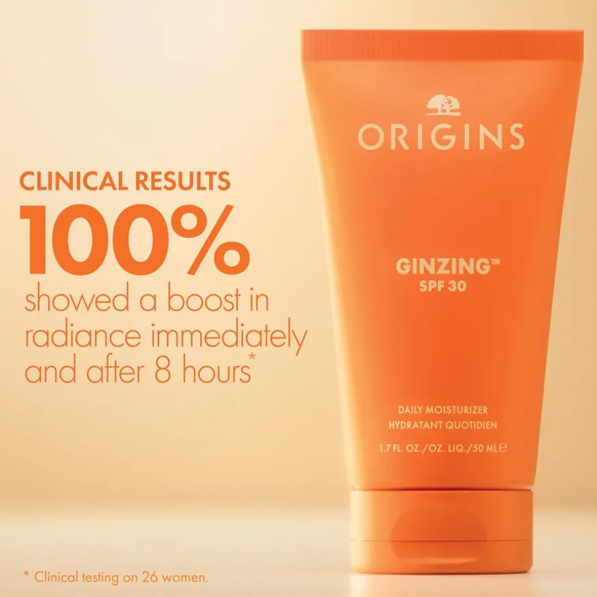GinZing SPF 30 Daily Moisturizer er en dagkrem med faktor 30. Origins nye GinZing™ Moisturizer med SPF 30 er hudens daglige forsvarer, som gir fuktighet, glød, solbeskyttelse og antioksidantforsvar – i bare én formel.