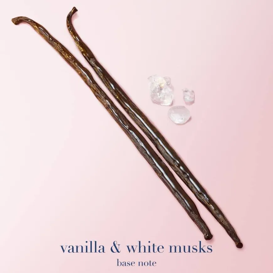 - En blanding av hvitt tre og varmt sedertre forsterker den sensuelle, beroligende vaniljebourbon-infusjonen i bunnen med den beroligende effekten av hvit musk.