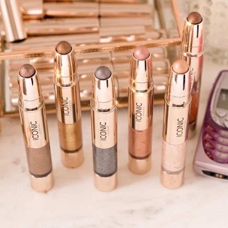Glaze Crayon – ICONIC tosidige øyeduo er den ultimate 2-i-1 fargestiften slik at du kan skape skimrende, ultra-hypnotiserende øyne, på sekunder. Den er fullpakket med perlemorspigmenter og uimotståelig gnist, nå kan du en helt ny måte å skape en forførende og skimrende look, på et øyeblikk. Den ene enden har en super silkemyk øyenskyggestift som kan jevnes over øyelokket for et fengslende blikk med metallisk farge. Den andre enden er en ultragenerøs, ikke-klebrig glittergel som er perfekt når du ønsker å skape en glitrende, våt glosseffekt. Produktet er vegansk og passer for alle hudtyper.