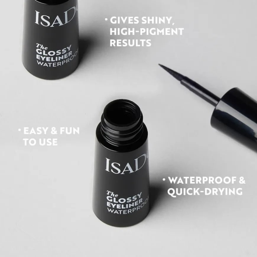 Glossy Eyeliner Waterproof er en blank, vannfast flytende eyeliner. Denne vannbaserte, flytende eyelineren gir en intens og blank definisjon til øynene dine.