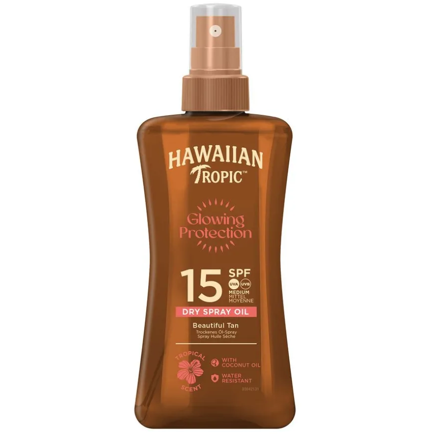 Gi huden din den ultimate beskyttelsen og gløden den fortjener denne sommeren med Hawaiian Tropics Glowing Protection Dry Spray Oil. Denne innovative tørre oljen som inneholder kokosnøttolje kombinerer beskyttelse mot solens skadelige stråler med en silkeaktig følelse som absorberes umiddelbart. Med en lett og rask påføringsspray er denne vannbestandige oljen perfekt for travle dager ute. Nyt solen med tillit til at huden din er beskyttet, velduftende og strålende.