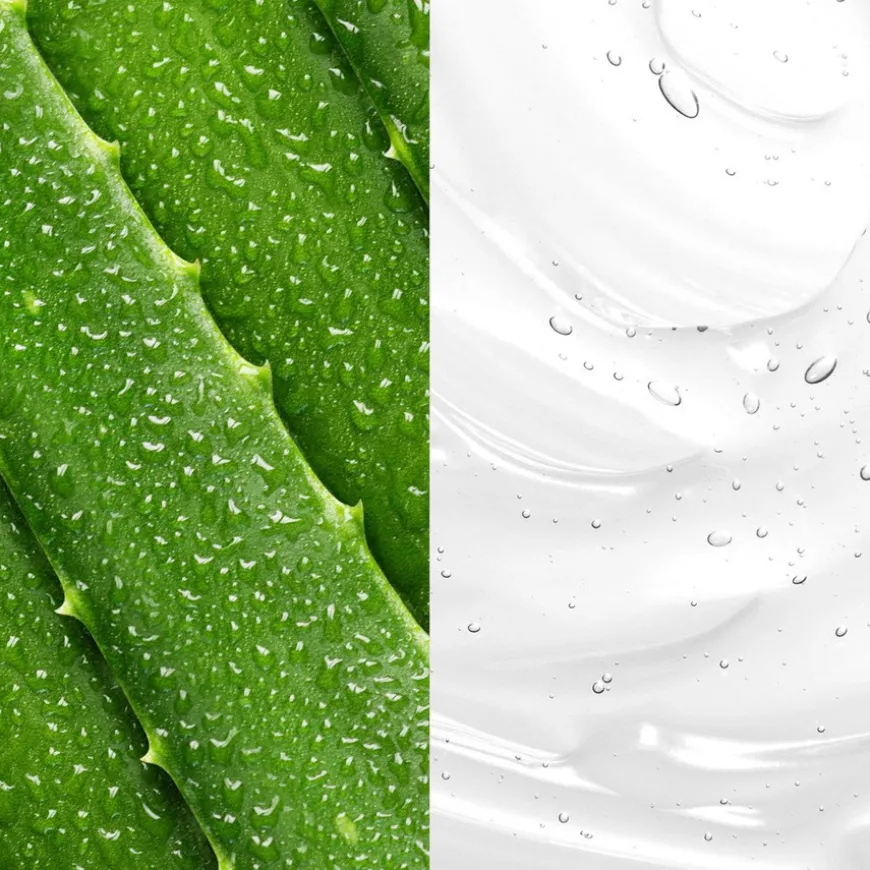 - Beroligende og fuktighetsgivende aloe vera: er fuktighetsgivende og vil også virke beroligende med sine fuktighetsgivende egenskaper. Aloe vera kan også bidra til å gjenopprette huden til sin tidligere glød, ved å duse ned mørke flekker gradvis.