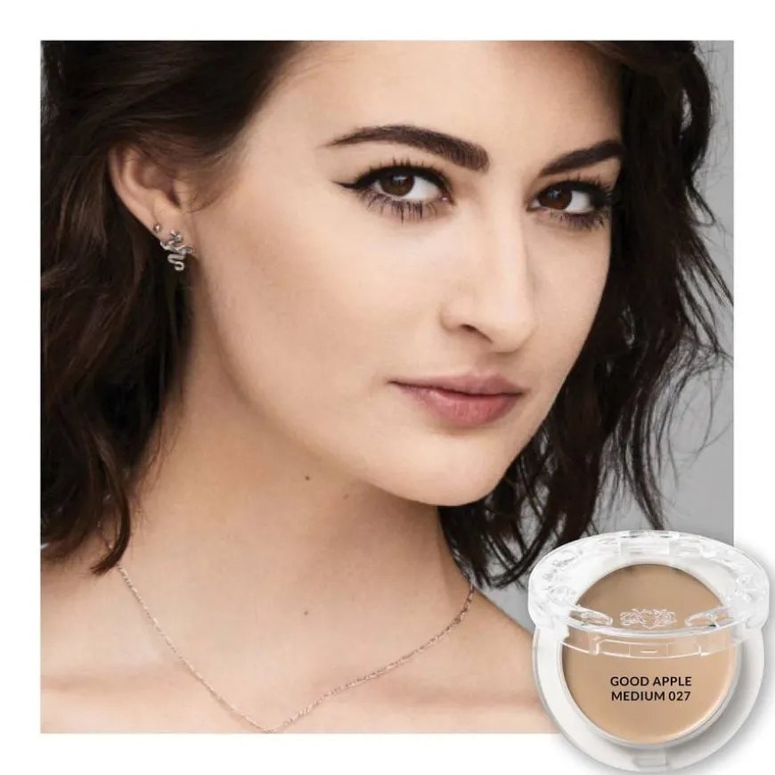 Good Apple Skin-Perfecting Foundation Balm er en fuktgivende foundation med en lett, langtidsholdbar formula, som er fullt dekkende og lett å bygge opp. Produktet gir samtidig en frisk, matt finish. Inneholder epleekstrakt, som nærer huden samt minimerer synligheten av porer og gir huden et glatt og sunt utseende. Den lette formulaen dekker urenheter og fargeforandringer, og gir et øyeblikkelig selvsikkerhetsboost. God for huden og planeten: Good Apple Skin-Perfecting Foundation Balm kommer i et innovativt design, som er 100 % resirkulerbart – uten speil, magneter eller metall. Tips! Blend og bygg opp til ønsket dekkeevne ved bruk av en beauty blender eller en foundationbørste. Benytt en duppende teknikk for å få den høyeste dekkeevnen. Bonus: Bruk fingrene for å spotdekke! Ved oljete områder kan Lock-It Setting Powder benyttes.