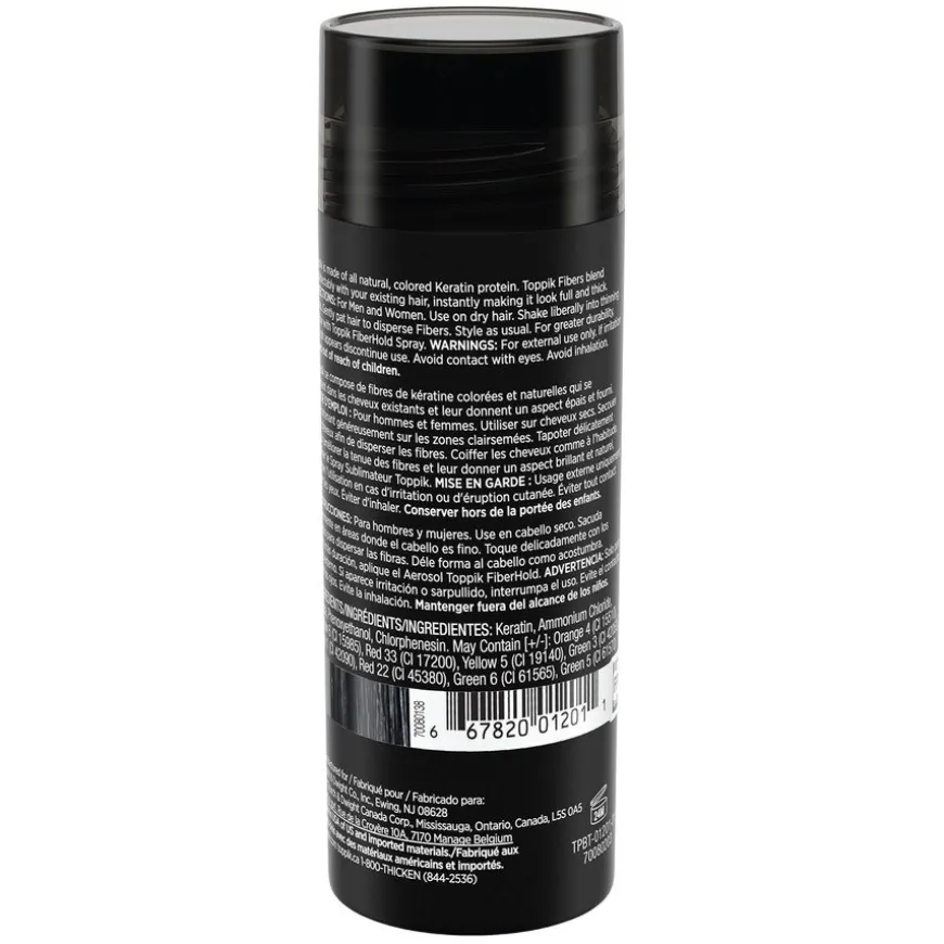 Toppik Hair Building Fiber er en enkel naturlig løsning for å skjule hårtap eller øke tettheten og volumet som håret mangler med hårfiber. Drysses jevnt over de tynnende områdene. Fibrene forsvinner hver gang du vasker håret, noe som innebærer at du selv kan bestemme hvor ofte og mye du ønsker å bruke.