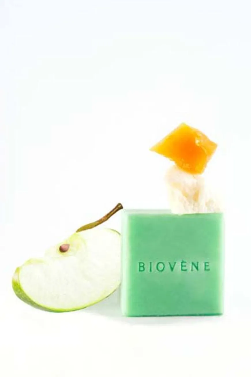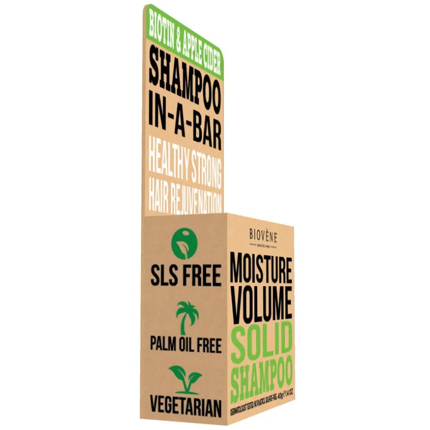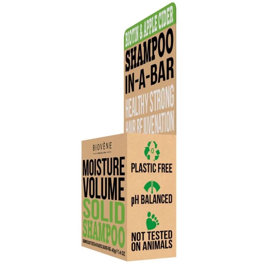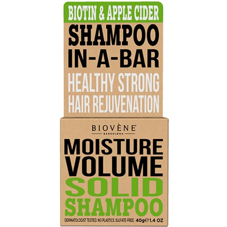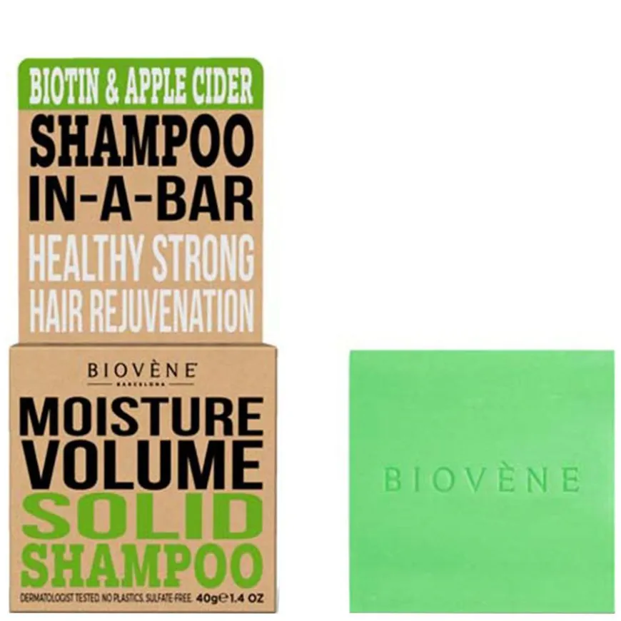 Biovène Hair Care Shampoo Bar Moisture Volume Biotin & Apple Cider er en miljøvennlig shampoobar med førsteklasses ingredienser;naturlig eplecidereddik, epleekstrakt, biotin, sheasmør og bivoks. Moisture Volume Shampoo Bar er skånsom nok til å brukes daglig og etterlater håret med en utrolig ren, frisk og tilfredsstillende følelse. Passer for alle hårtyper og trygt for fargebehandlet hår.
