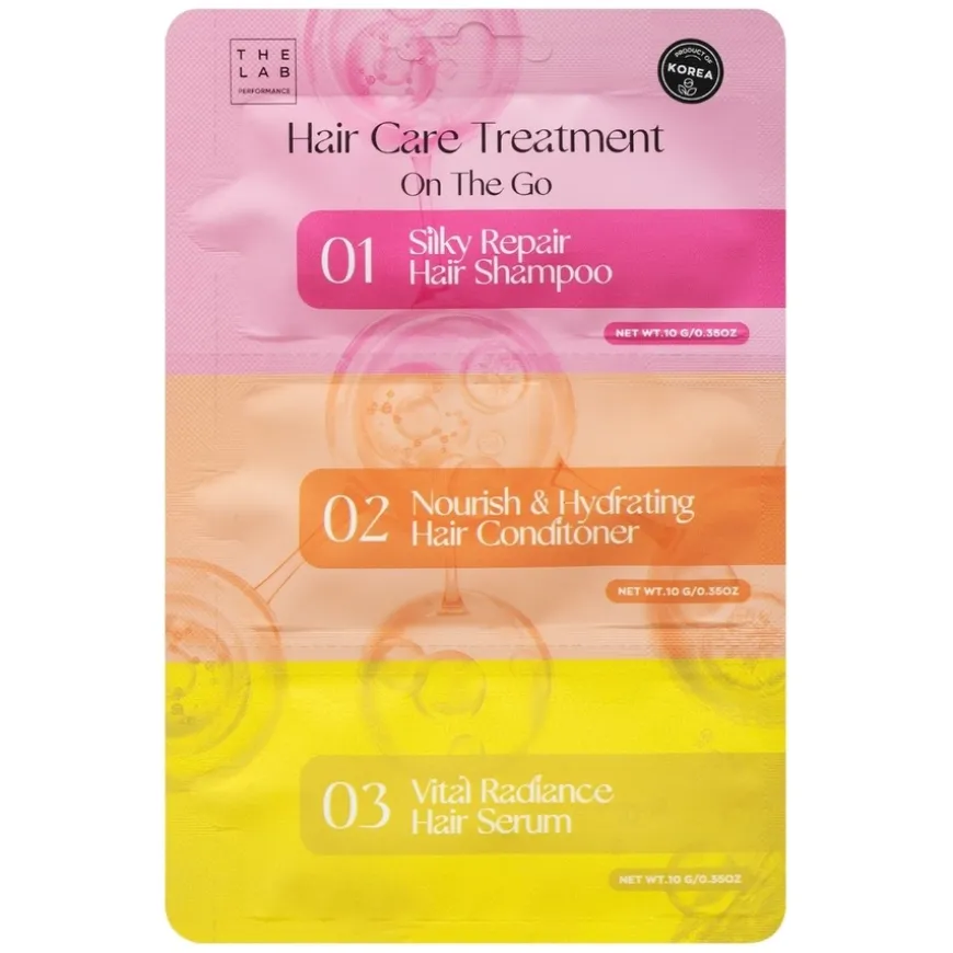Hair Care Treatment On-The-Go er et kompakt tredelt hårpleiesett bestående av shampoo, balsam og hårserum. Dette praktiske minisetet er utviklet for å rense hår og hodebunn samtidig som det tilfører pleie og mykhet til håret – uansett hvor du er. Shampooen rengjør skånsomt uten å strippe håret for naturlige oljer. Balsamen gir fukt og glans til lengdene, og serumet kan brukes både i vått og tørt hår for ekstra næring, mykhet og glans. Perfekt til skole, trening, jobb eller reise. Egnet for alle hårtyper.