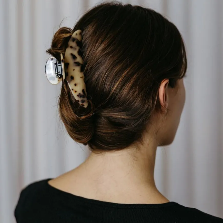ByBarb Hair Claw Diana Large er en stor og elegant hårspenne, spesielt designet for deg med langt eller tykt hår. Med en kraftig fjær sikrer den et solid grep, som holder håret på plass hele dagen uten å skade eller slite det. Den større størrelsen gjør hårspennen spesielt egnet for lengre hår, samtidig som den gir et stilig og sofistikert uttrykk. Perfekt for både hverdagslige frisyrer og festlige anledninger. Størrelsen på hårspennen er 12 cm x 4,5 cm, noe som gjør den både funksjonell og dekorativ.