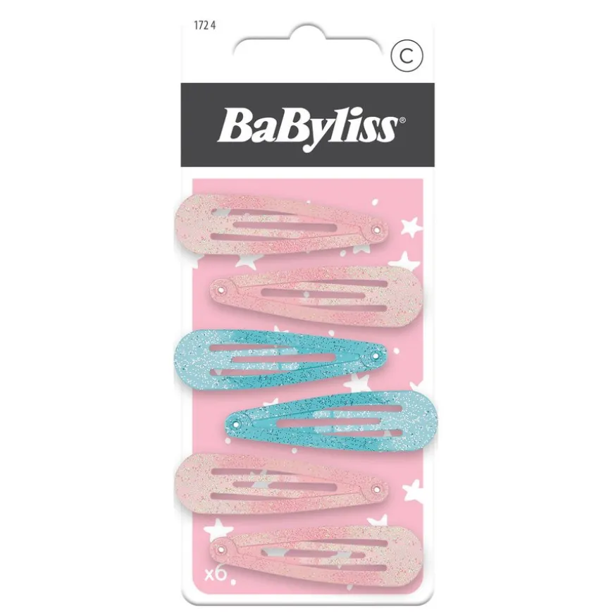BaByliss Accessories Hair Clip Kids er en pakke med fire fargerike og glitrende hårspenner designet spesielt for barn. Disse hårspennene kommer i to rosa og to turkise farger, og gir en ekstra touch av glans og moro til enhver frisyre. Hårspennene er enkle å bruke og sitter godt i håret, noe som gjør dem ideelle for både daglig bruk og spesielle anledninger.