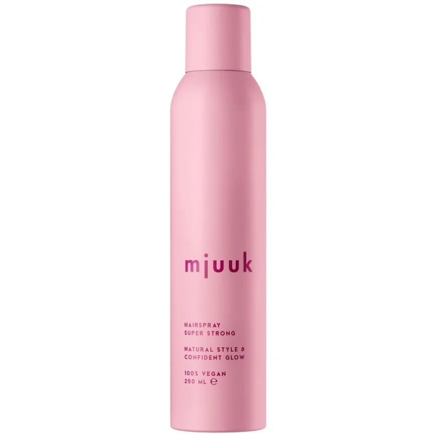 Hairspray Super Strong er en hårspray som gir frisyren din et sterkt og langvarig hold. Produktet tørker raskt og holder frisyren din på plass hele dagen. Den inkluderer fuktighetsbeskyttelse for å holde frizz unna. Formelen er 100% vegansk, og emballasjen er resirkulerbar.