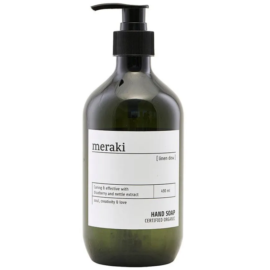 Hand Soap Linen Dew er en mild og effektiv håndsåpe som rengjør hendene. Håndsåpen er rik på økologiske ekstrakter fra blåbær og nesle som bidrar med nærende mineralsalter. Still håndsåpen på et lite brett og la den stå fremme til pynt på badet eller kjøkkenet. Den er egnet for daglig bruk og for alle hudtyper.