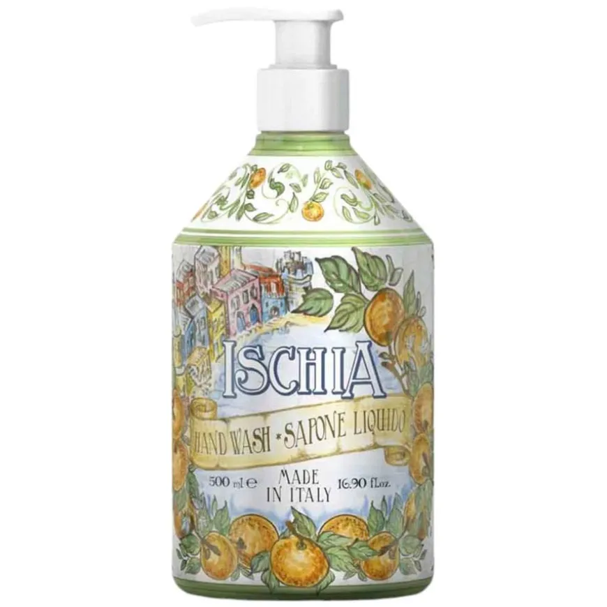Hand Wash Ischia er en herlig flytende såpe beriket med Aloe Vera juice og vitamin E for ekstra fuktighet og næring til huden. Motvirker tørr hud, holder den myk, og etterlater en nydelig frisk duft. Duften åpner med et blendende spill av glitrende toner, der bergamott og solvarme appelsiner treffer som solstråler på huden din. Bergamotten legger til sin karakteristiske sitrusfriskhet, mens solvarme appelsiner tilfører varme og sødme. Sammen skaper de en nydelig duft som umiddelbart fanger oppmerksomheten og gir en følelse av solfylte dager i en appesinlund i hjertet av Italia. Du finner også et snev av gardenia og rose. Gardeniaen med sin sensuelle aroma, gir en touch av eksotisk eleganse, mens rosen legger til en feminin og romantisk dybde.