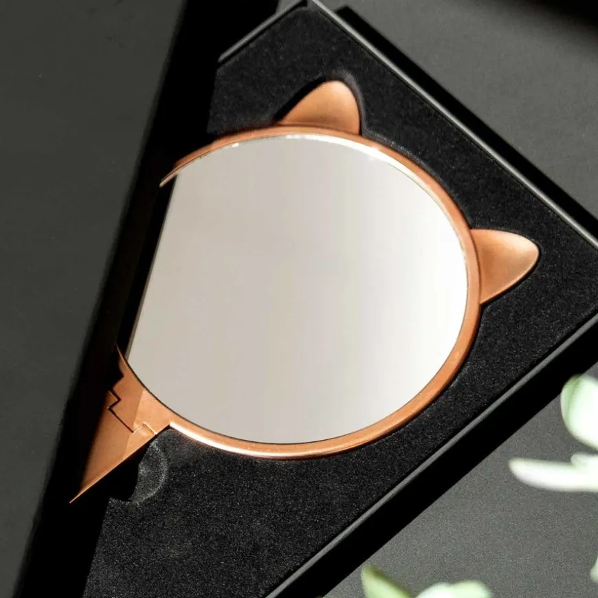 Speilet kan stilles opp slik at det står stødig når du skal sminke deg.