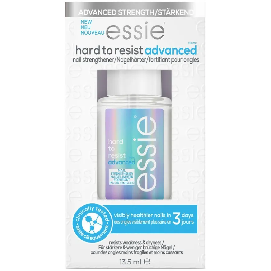 Hard To Resist Advanced Nail Strengheter er en styrkende neglepleie for å pleie og beskytte skadde negler. Gir synlig sunnere negler etter 3 dager*. Motvirker tørre og svake negler og har vegansk formel**. Den er kosmetoklinisk testet og har transparent formel. 98 % synes neglene føles beskyttet***. MSM teknologien styrker myke og skadde negler.