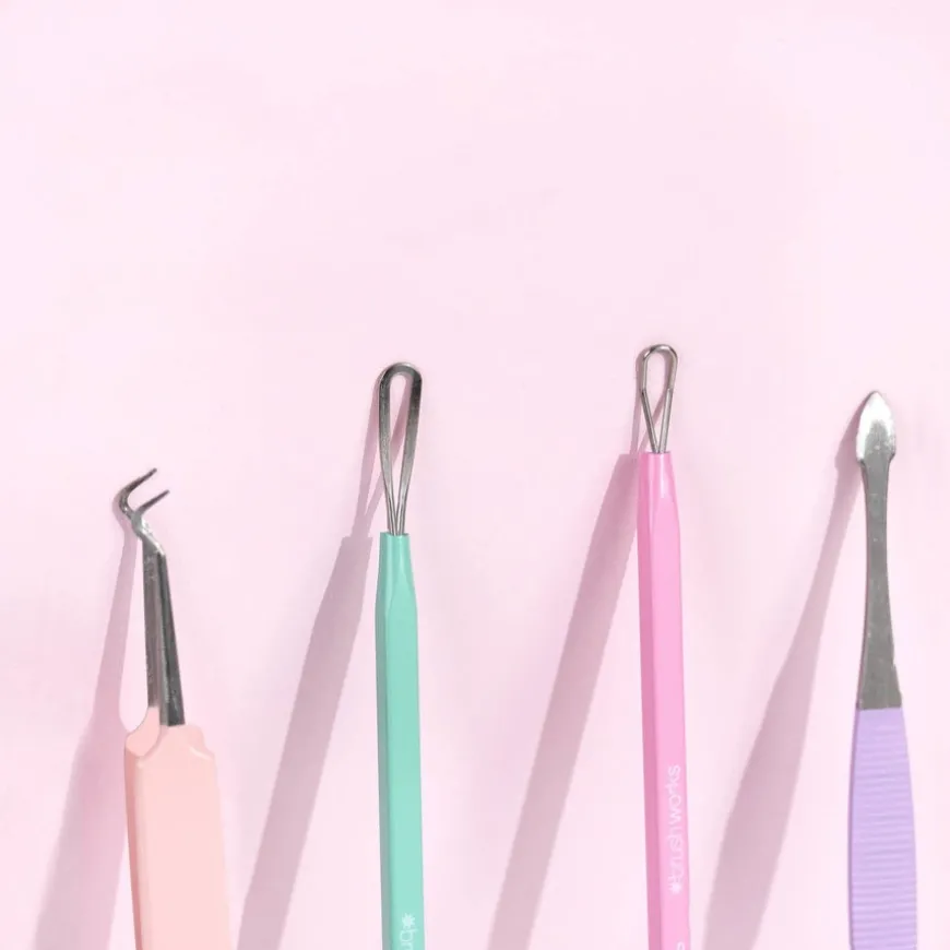 HD Pastel Blackhead & Blemish Remover Set er et komplett sett med fire unike verktøy med syv forskjellige hoder. Settet fjerner hudormer og andre urenheter for en jevn og klar hud uten å etterlate skader på huden. Håndlaget i rustfritt stål og av høy kvalitet – perfekt designet for ytelse og presisjon. Disse verktøyene er holdbare, hygieniske og enkle å rengjøre. I tillegg kommer disse verktøyene i en herlig pastellfarget miks.