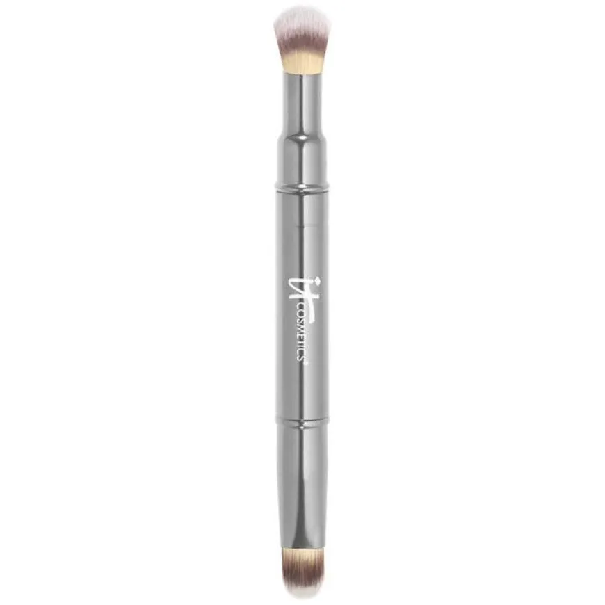IT Cosmetics Heavenly Luxe Dual Airbrush Concealer Brush #2 er en tosidig børst som gjør det lett som en lek å påføre flytende- og krem-concealere. Med de ultra-myke, prisvinnende syntetiske Heavenly Luxe-hårene, som ikke faller av, er dette et must-have i sminkevesken din for et perfekt resultat. Mens den flate enden jevner ut concealer under øynene dine, rundt nesen og andre på vanskelige områder, fjerner den runde og fluffy enden synlige ujevnheter for en feilfri finish, hver gang.