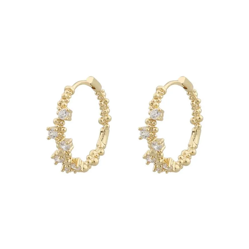 Et søt par hoop øredobber med unik design og cubic zirconia steiner. Disse fasjonable øredobbene passer til alle anledninger. Enkel å bruke med klikklås. Størrelse: 18 mm.