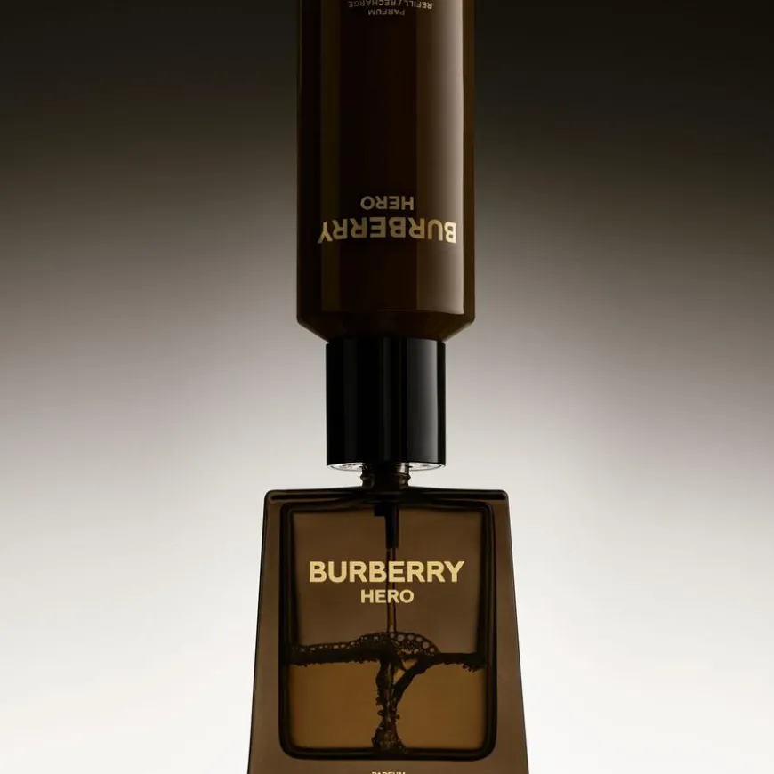 Refill til Burberry Hero Parfum; Burberry Hero Parfum portretterer en moderne mann. Oppriktig, men likevel modig, overgår han stadig seg selv i enhver utfordring. Ikke lenger begrenset av fordommer kobler han seg til sitt indre selv for å omfavne det ekstraordinære innenfra. Hero Parfum er den nyeste duften fra Burberry for menn. Intens og kraftig ledes duften av en base av varme sedertreoljer. På toppen gir noter av amyris og cypriololje liv til aromaen for en dyp treaktig avslutning. Forny din Burberry Hero Parfum flaske med Hero-refillen – designet for å fylle på din Burberry-duft.