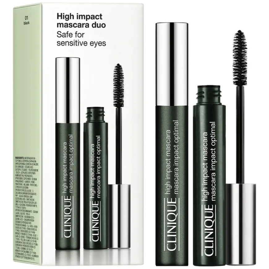 High Impact Duo Set fra Clinique inneholder to full-size High Impact™ Mascara for deg som ønsker ekstra volum og lengde med et naturlig og definert resultat. Den myke fiberbørsten bøyer, separerer og bygger opp vippene for et intenst vippedrama – uten å klumpe. Mascaraen gir en fyldig, dyp farge som forsterker øynene og gir en vakker, åpen effekt. High Impact™ Mascara er kjent for sin skånsomme, men effektive formel og er testet av øyelege. Den passer også for sensitive øyne og kontaktlinsebrukere. Som alle Cliniques produkter er den 100 % parfymefri og allergitestet. Perfekt som gave eller for deg som vil ha én hjemme og én i vesken!