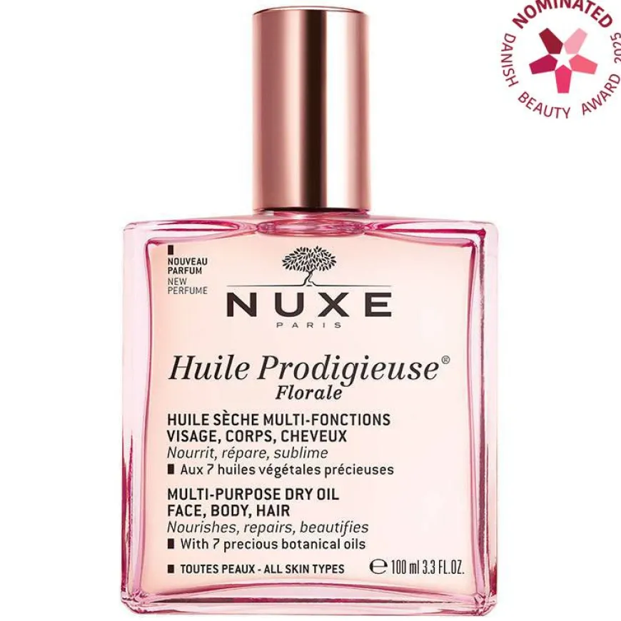 - Tørr olje med en frisk blomsterduft som nærer, reparerer og forskjønner ansikt, kropp og hår.