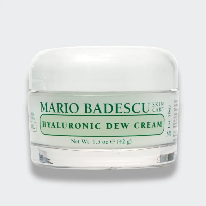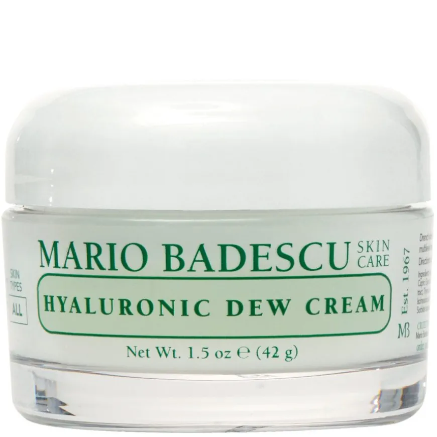 Mario Badescu Hyaluronic Drew Cream lette vann-gelé serumhybrid har påfyllende egenskaper for en duggfriskt, silkemyk hud. Formulert med to molekylvekter av natriumhyaluronat for å tiltrekke seg fuktighet, niacinamid for å balansere på nytt og timianekstrakt for å øke hudens klarhet – huden vil bli duggfrisk, ekstremt hydrert og med en glassklar glød.
