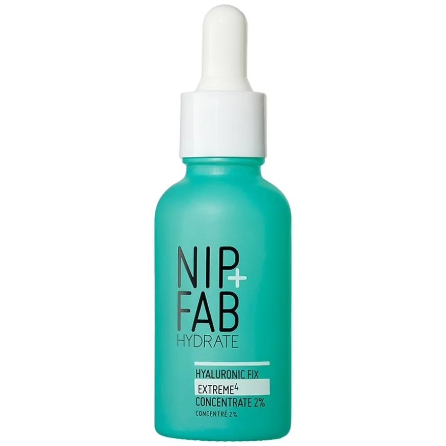 NIP+FAB Hyaluronic Fix Extreme4 Concentrate 2% gir en 170 % økning i umiddelbar hydrering ved påføring*. Dette lette konsentratet trekker raskt inn og sørger for langvarig fuktighet.