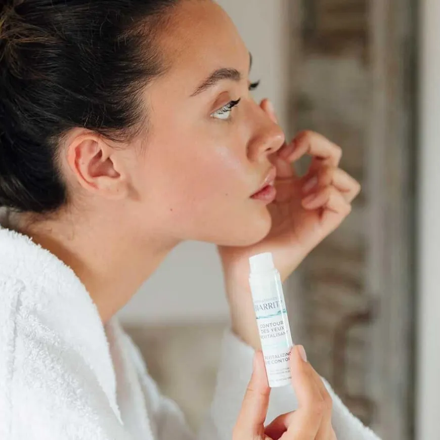 Hydra Protect + Revitalizing Eye Contour fra Laboratoires De Biarritz er en multifunksjonell øyekrem som gir 24 timers fuktighet samtidig som den beskytter huden rundt øynene mot daglige belastninger som blått lys, luftforurensning, stress og tretthet. Den hjelper med å forebygge for tidlig aldring, jevner ut fine linjer forårsaket av tørrhet og bidrar til fastere hud med et friskere, mer uthvilt utseende.