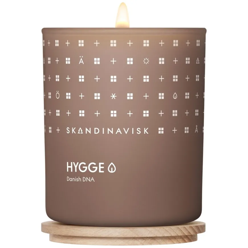 Skandinavisk HYGGE Scented Candle med voks fra svensk rapsolje, som er bærekraftig dyrket og ikke-GMO, og blandet for å brenne jevnt og sakte med minimal miljøpåvirkning. Vegansk og ikke testet på dyr.