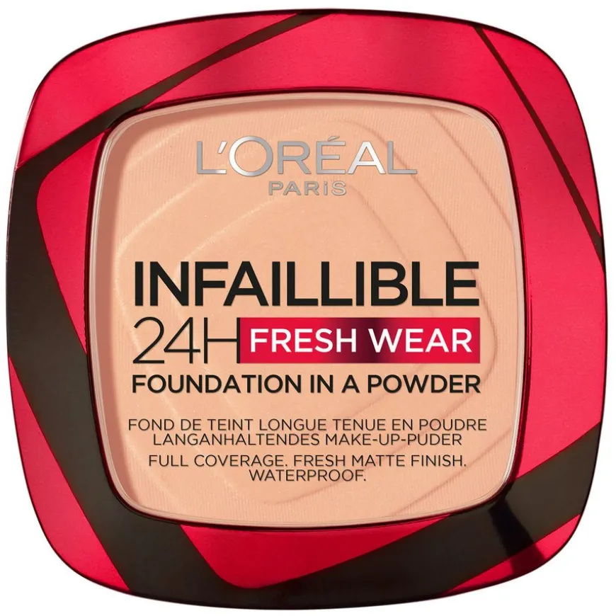 Oppdag Infaillible 24H Fresh Wear Foundation In A Powder fra L’Oréal Paris. Denne pudderfoundationen dekker og matter som en flytende foundation samtidg som den matter ned huden uten å «kake» seg. Dette er mer enn bare et pudder! Beriket med fine selvklebende pigmenter som fester seg til huden for å vare hele dagen. Det er lett å tone ut og gir huden din en naturlig, sømløs, fløyelsmyk matt finish. Tilgjengelig i flere nyanser for å passe til forskjellige hudtoner.