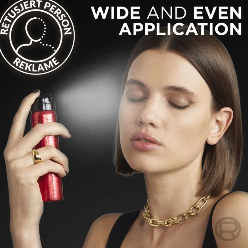 - Hold produktet 30 cm fra ansiktet og spray med sirkelbevegelser for jevn påføring.