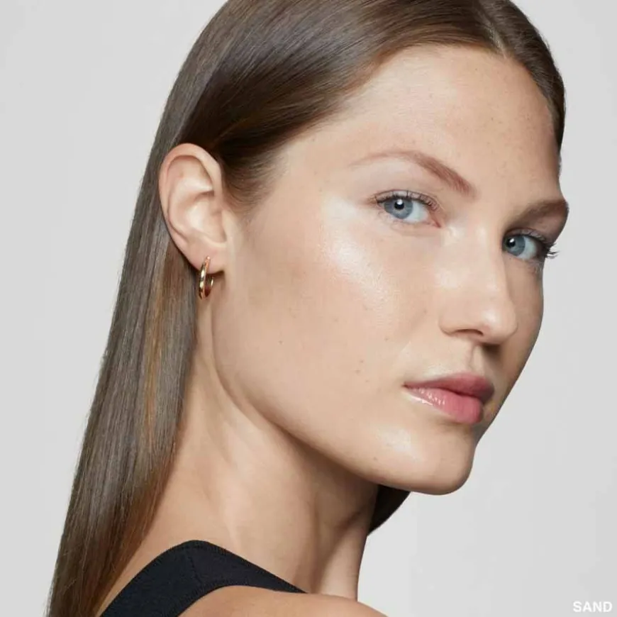 Fargen 02 N 032 Sand er lys beige med en balanse mellom gule og rosa undertoner; en anelse mer gul; for lys hud.