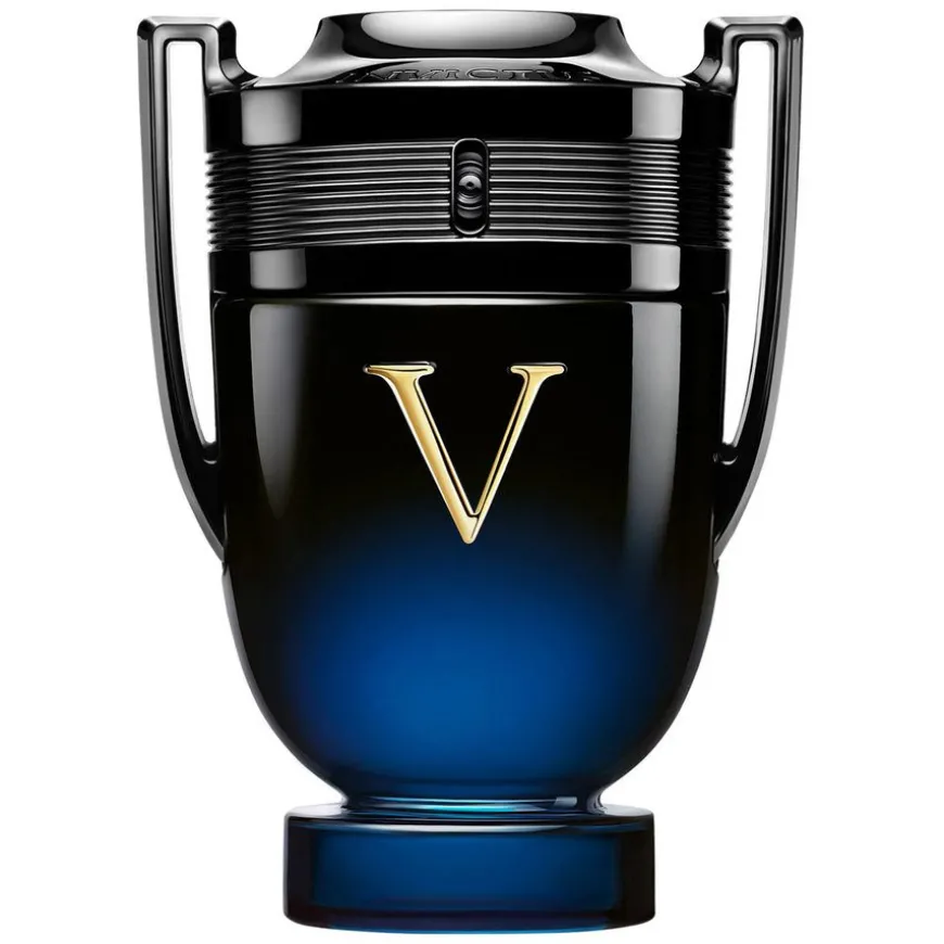 Den ikoniske invictus-seiersflasken konsentrerer all sin kraft med et nytt elegant lakkert trofé som gjenspeiler den intense rikdommen til eliksiren. Den gyldne «V» for Victory viser frem duftens kraftige vinnende DNA, og er gravert inn i glasset, og skiller seg ut mot en lakkert gradient fra svart til mørkeblått. En blank svart topp kroner trofeet. Det er det ultimate ikonet for seier. Never stop winning.