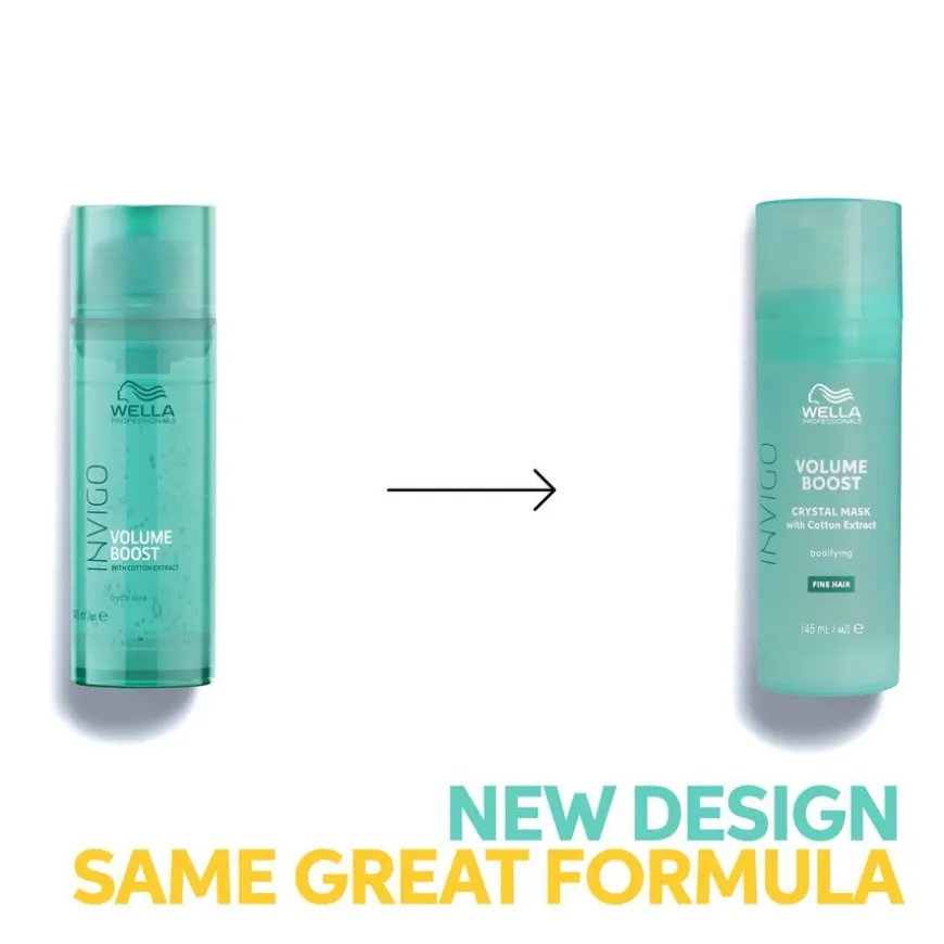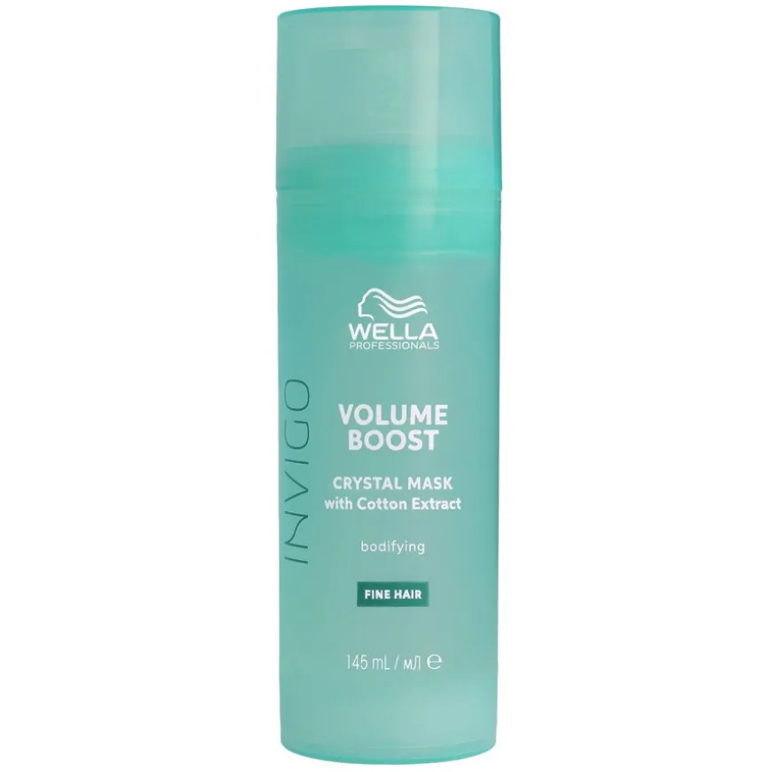 Wella Professionals Invigo Volume Boost Crystal Mask er en maske som gir fylde, volum og håndterbarhet. Denne behandlingen for ekstra lett pleie gjør håret mykt og glatt, uten å tynge ned det som en vanlig hårkur gjør. Crystal Mask er beriket med Volume Boost-Blend™ og inneholder volumgivende polymerer og lette ingredienser som gjør håret silkemykt, glatt og letthåndterlig.